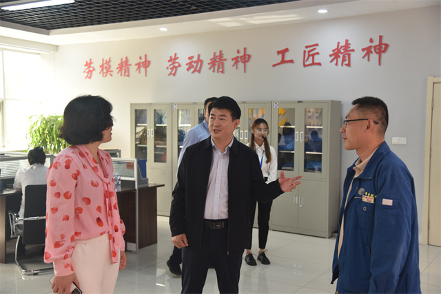 10月12日,山东省总工会生产保护部副部长张艳丽带领“省全员创新企业”、“齐鲁工匠”考察组,来到公司对全员创新工作开展情况以及“齐鲁工匠”候选人王鲁刚同志进行考察。市总工会党组成员、四级调研员鲍永翔,市总工会生产保护部部长蔡晓林,公司党委委员、人力资源与行政总监孙玉涛陪同考察。