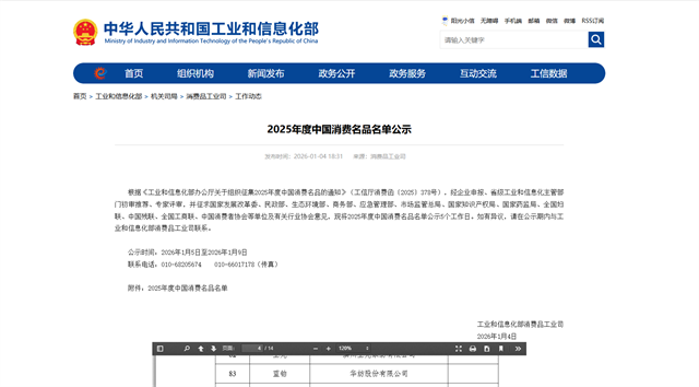 导读:近日,工业和信息化部公布了2025年度中国消费名品名单。