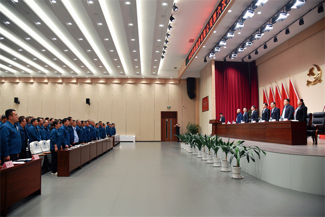 4月18日上午8:30时,在豪迈雄壮的国歌声中,中共华纺股份有限公司第六次党员大会在公司会议中心一号会议室隆重举行。