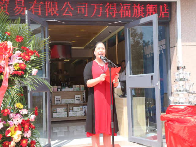 在当天的开业仪式上,王力民为“WANDEFO万得福”旗舰店开启首瓶原装进口干红。随后,参加开业仪式的公司员工和闻讯赶来的消费者一起进店体验。开业仪式由团委书记张岩冰主持。